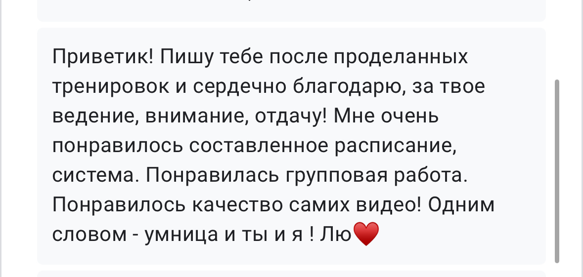В этот тариф не входит НИЧЕГО, кроме тренировок. Только ты сама и мои тренировки